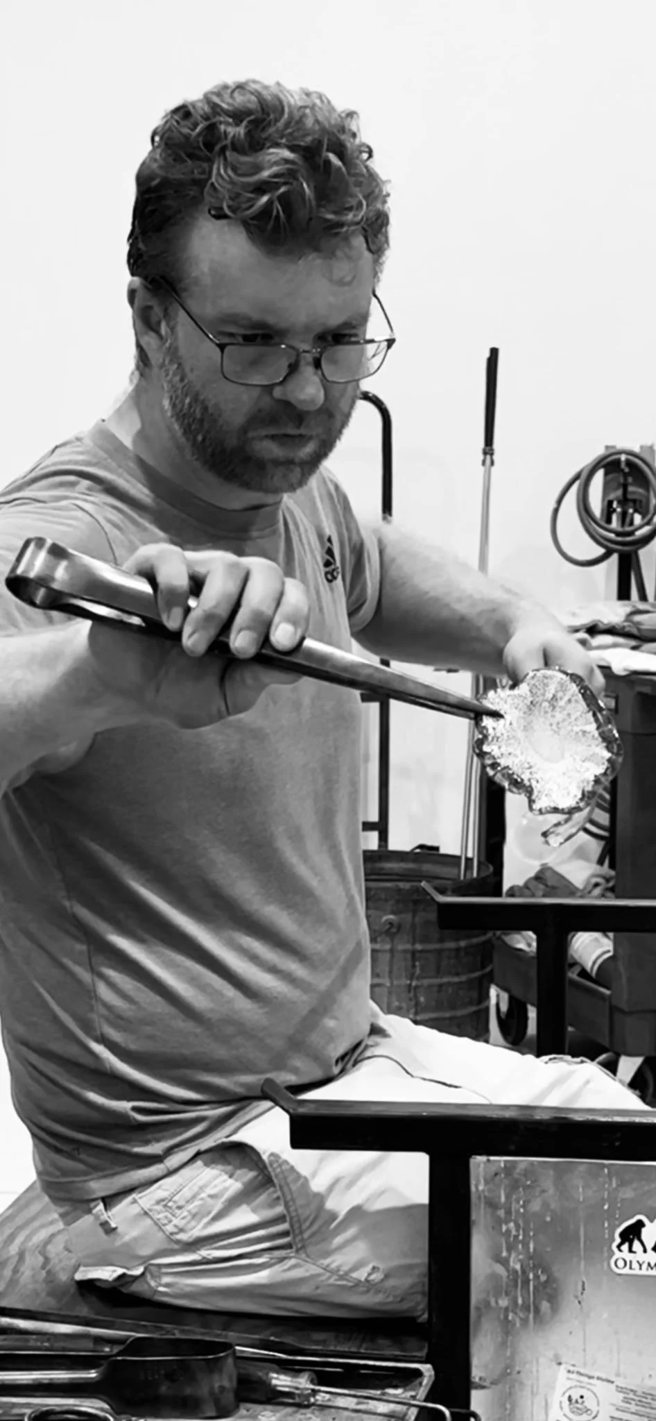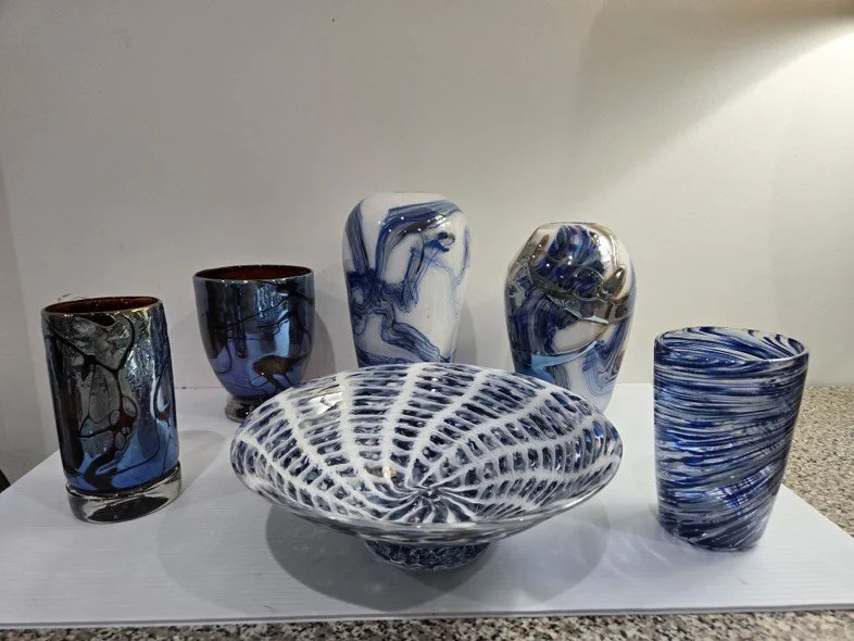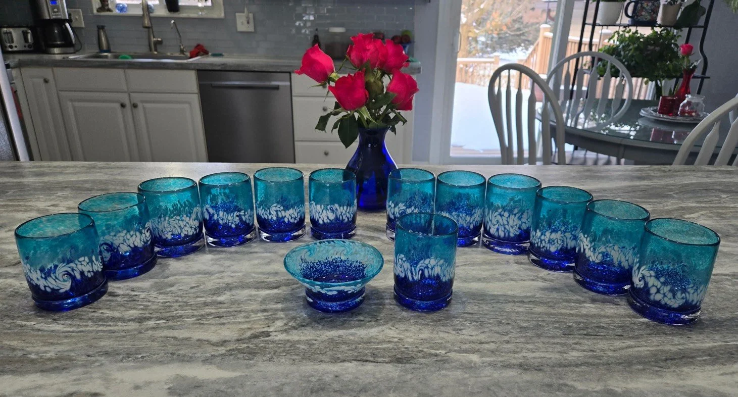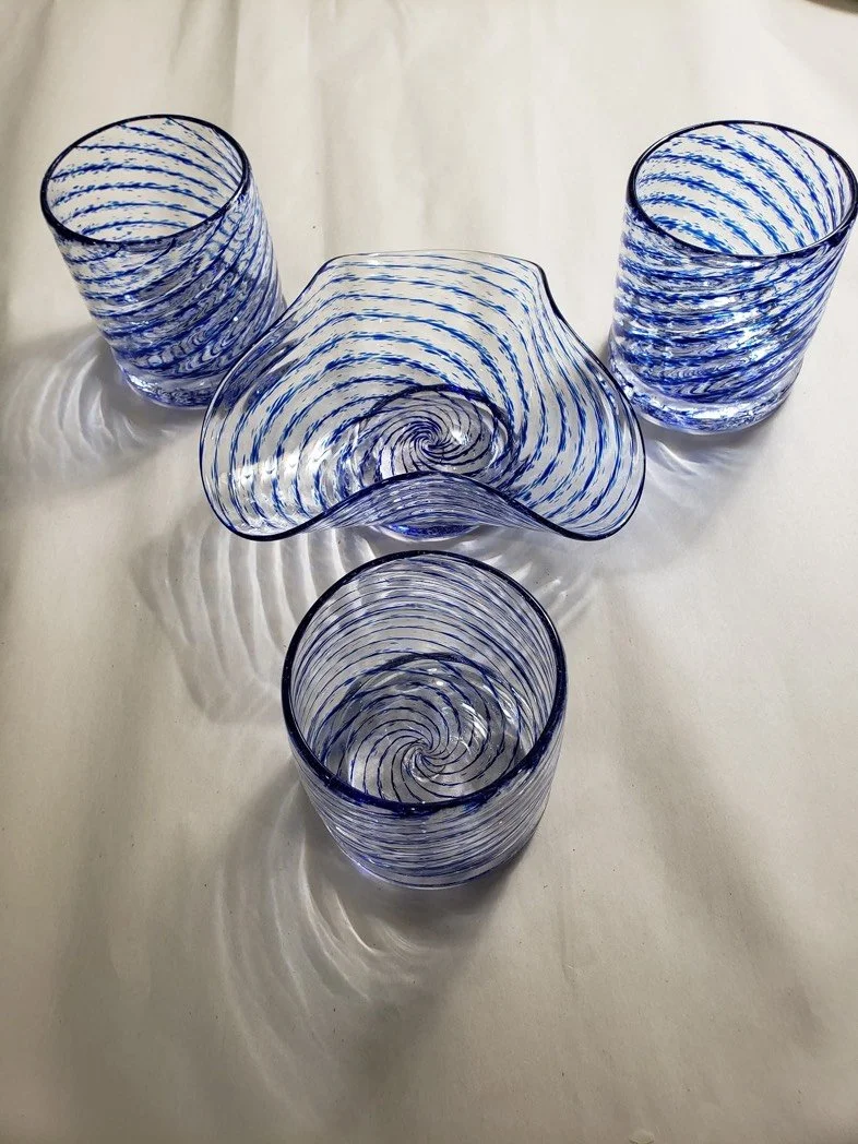 Ervin Glassworks is a family business established in 2020, owned and operated by father and son, Chris and Danny Ervin. Their home base is a private studio in Almont, MI. Chris began blowing glass at the College for Creative Studies in 2005 and has worked as an assistant to various glass artists in Colorado and the Metro Detroit area. Several years into his career, Chris passed his love of glassmaking on to his father, Danny, who then took his first gather of glass and found every opportunity to work with it as often as possible. Both Chris and Danny travel throughout Michigan, doing public demonstrations, selling their wares, and sharing their passion for the medium. They are always eager to share their interest in and love for making objects from molten sand.